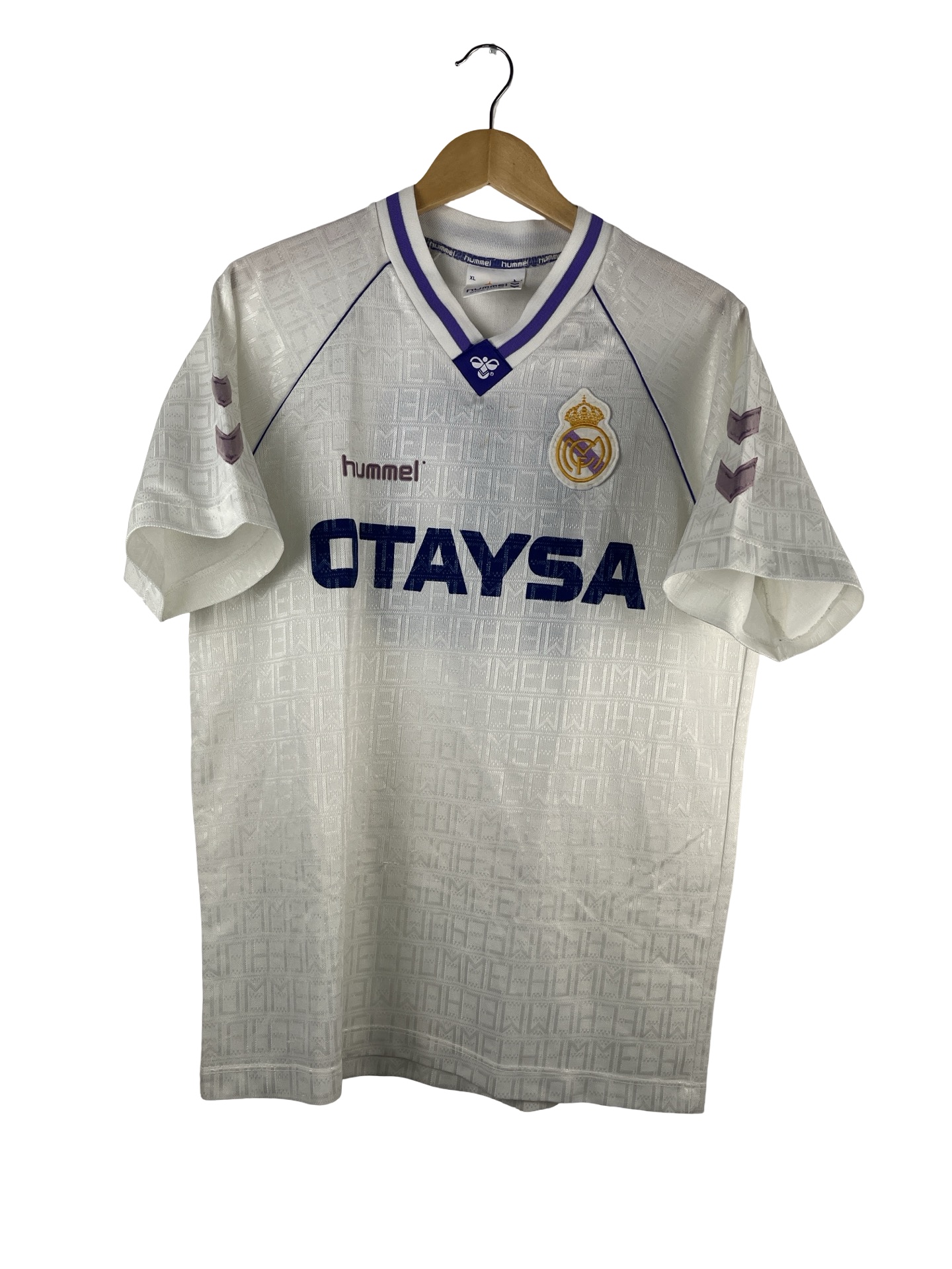 Maillot vintage du Real Madrid saison 1990/1992. Maillot domicile du club madrilène signé Hummel. Porté par la légende roumaine Gheorghe Hagi 10.