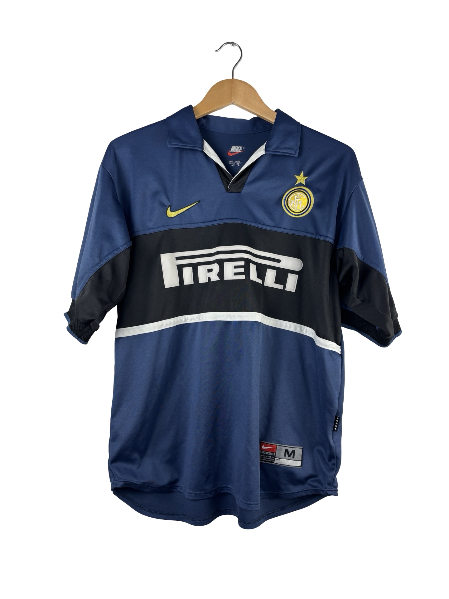 Maillot vintage de l’Inter Milan saison 1998/1999. Maillot thirdde l’Inter noir et bleu signé Nike. Sponsor légendaire Pirelli.