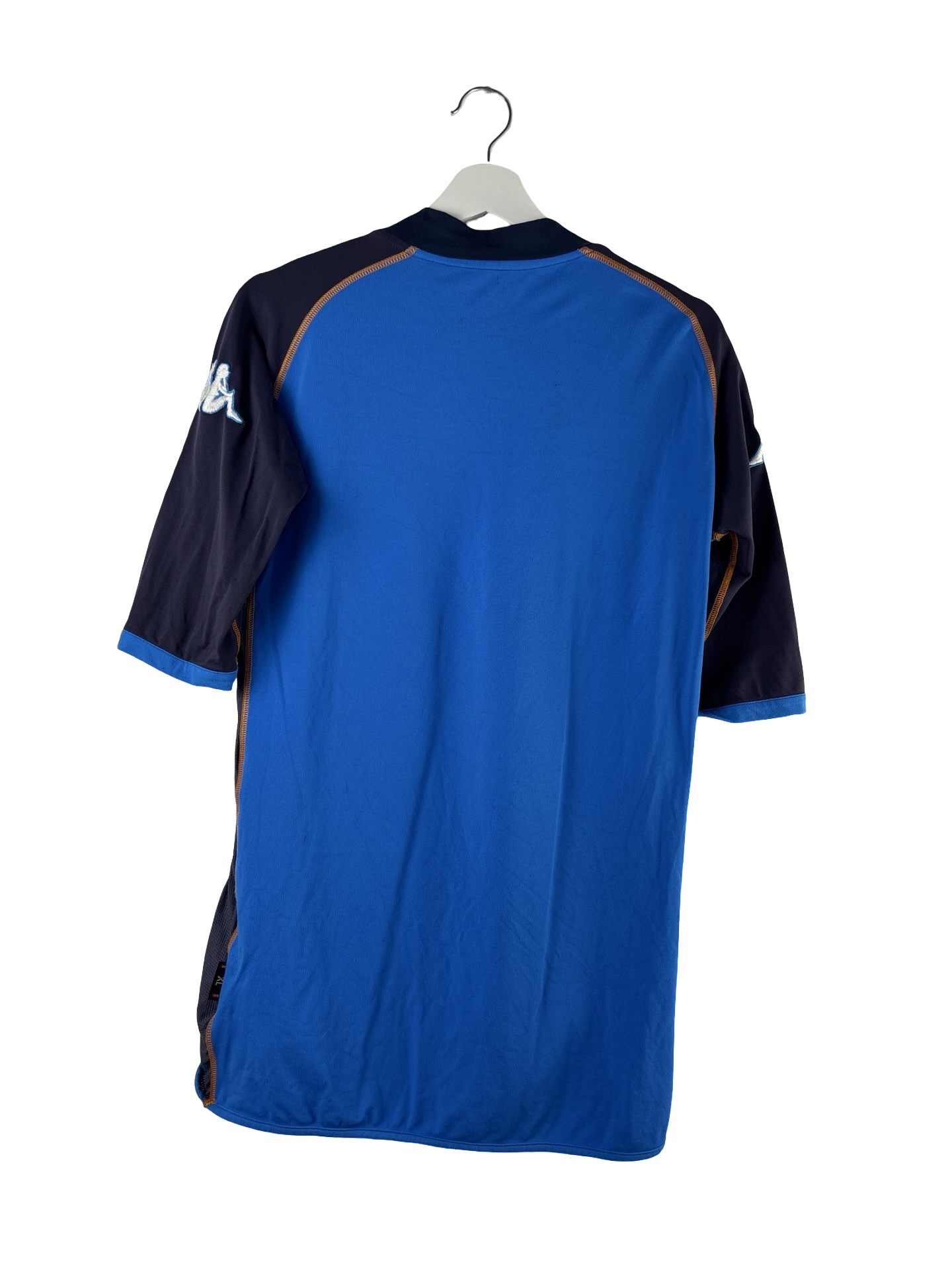 Maillot vintage de l’AJ Auxerre saison 2002/2003. Maillot extérieur porté par les auxerrois entrainés par Guy Roux. Avec un Djibril Cissé au sommet de sa forme, l’AJA finira à la 6ème place du classement synonyme de qualif pour la Coupe UEFA. Maillot iconique de notre Ligue 1, le fameux maillot Kappa et son sponsor PlayStation 2. Époque Djibril Cissé, Mexès, Boumsong, Lachuer, Sagna
