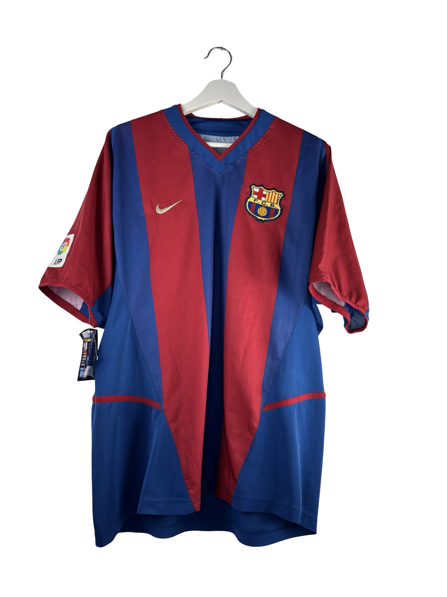 Maillot du Barca saison 2002/2003. Maillot domicile porté par les Blaugrana lors d’une saison décevante où Louis van Gaal et ses hommes ne termineront que 6ème de Liga. En Champions League, les Barcelonais seront éliminés par la Juventus en quart de finale. C’est la première saison en pro d’Andres Iniesta.