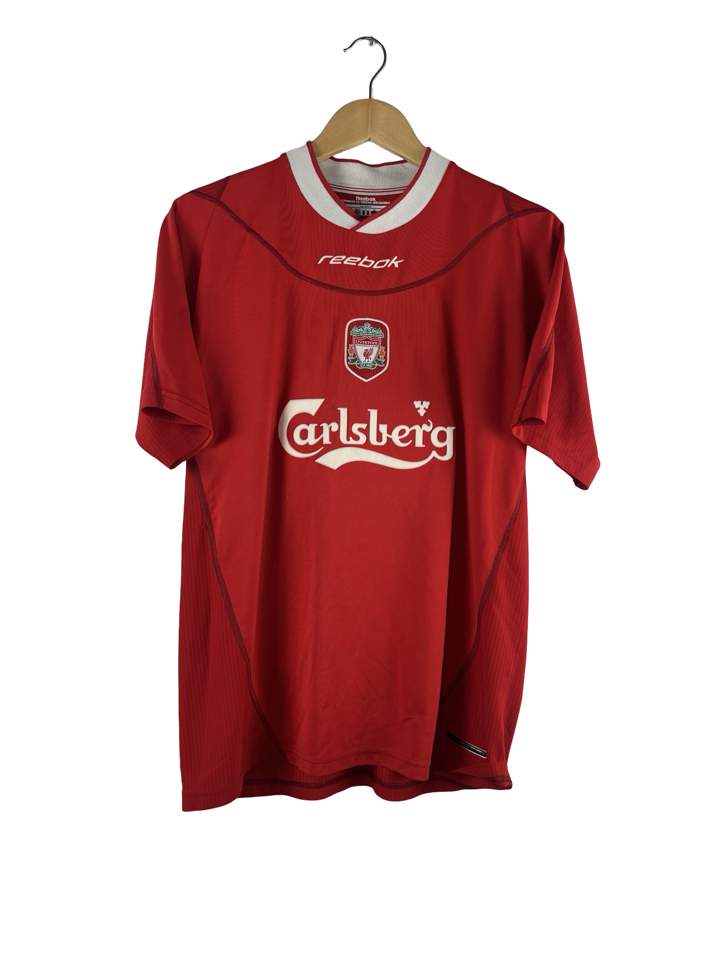 Maillot vintage de Liverpool saison 2002/2004. Maillot domicile porté durant deux saisons sous l’ère Gerard Houllier. Les Reds remporteront notamment la League Cup face à Manchester United (2-0) lors de la première saison. Maillot iconique de Liverpool Reebok avec son sponsor Carlsberg. Steven Gerrard 17.