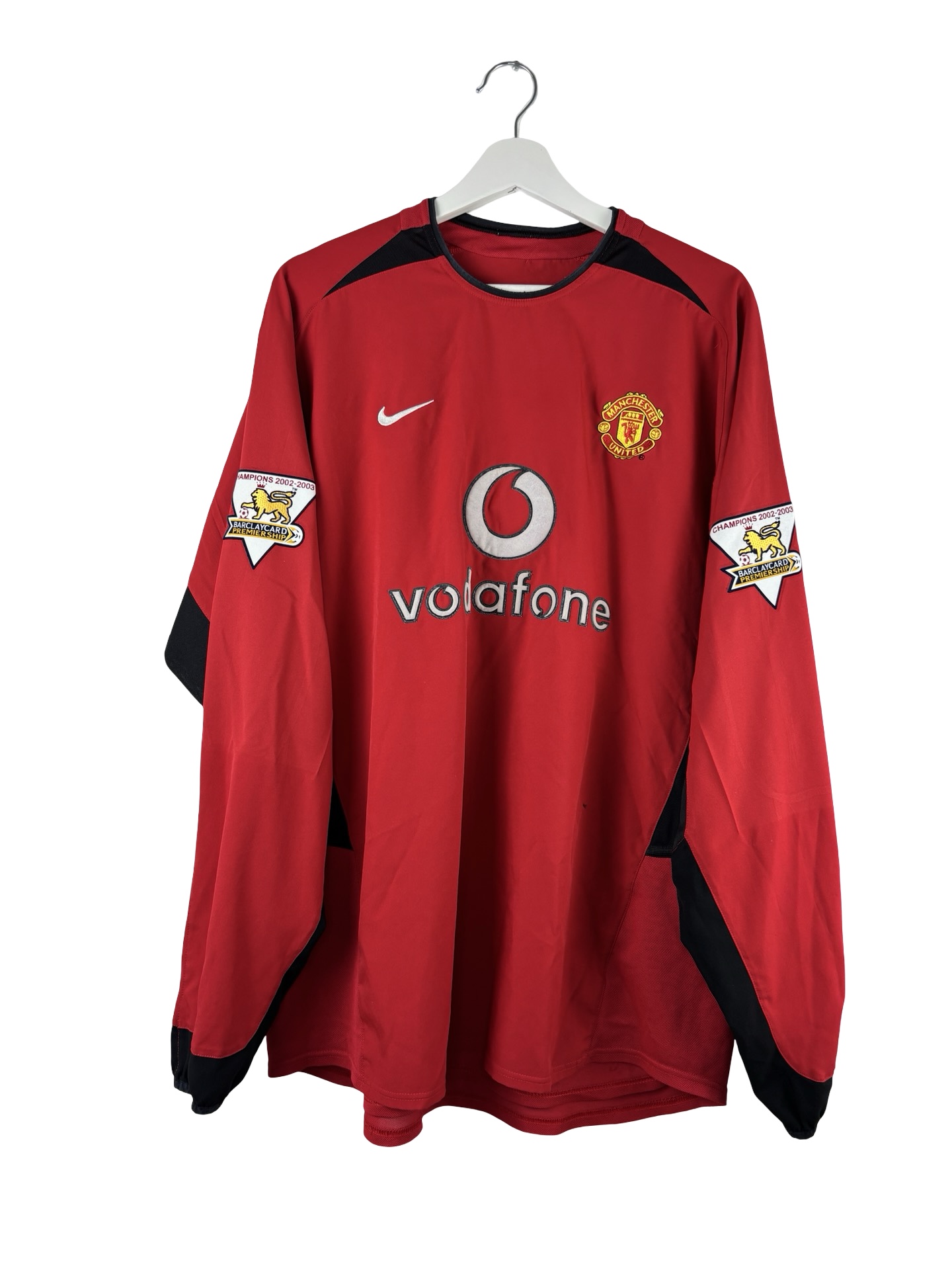 Maillot domicile des Red Devils porté durant deux saisons où ils finiront 3ème de Premier League les deux saisons. Ils remporteront la FA Cup face à Milwall lors de la première et seront battus en finale par Arsenal, lors de la seconde. Maillot iconique de l’époque Ferguson, maillot nike et son sponsor Vodafone. Première saison de la futur star Cristiano Ronaldo 7.
