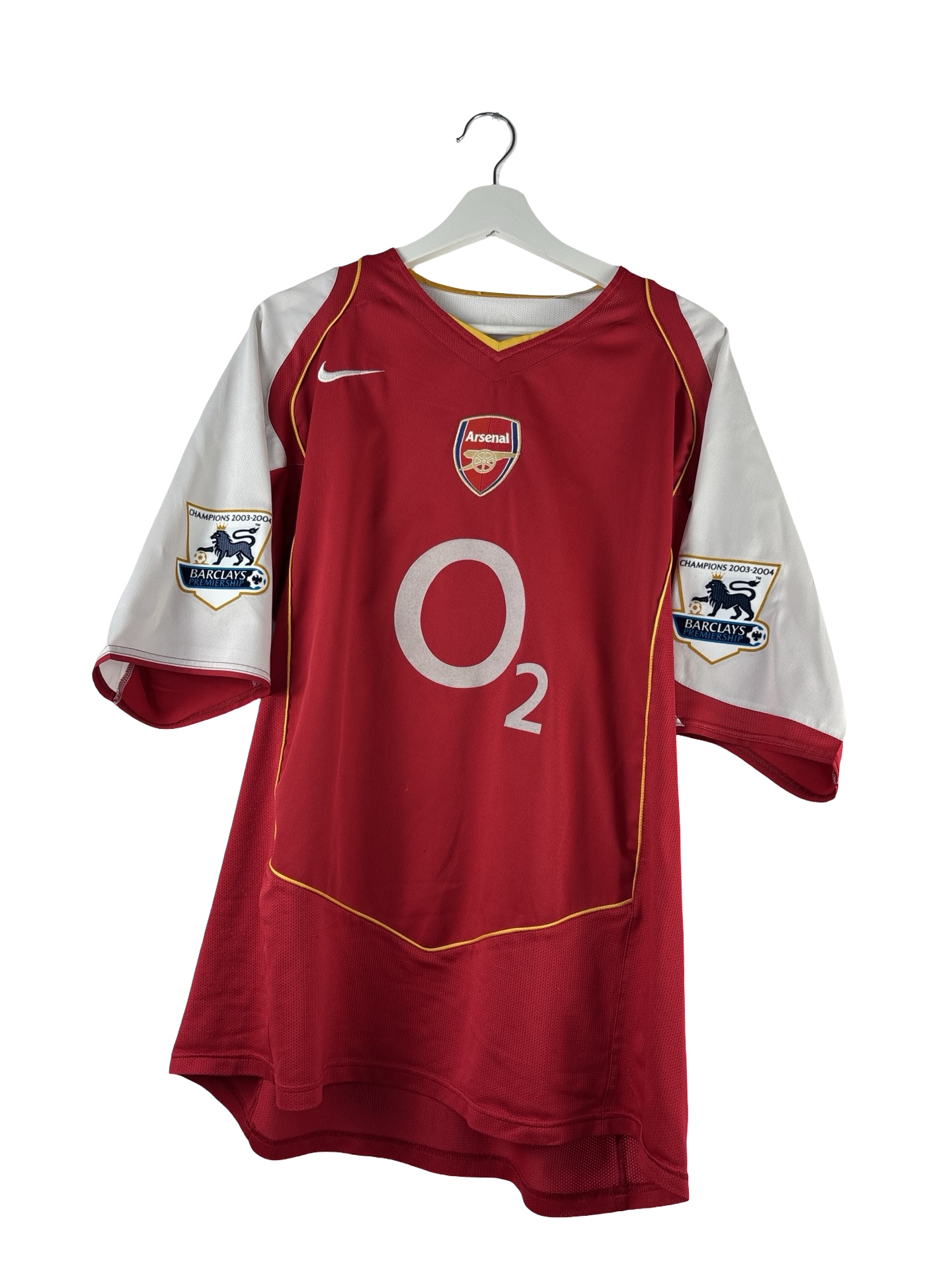 Maillot vintage d’Arsenal saison 2004/2005. Maillot iconique des Gunners rouge et blanc. Floqué Thierry Henry 14.
