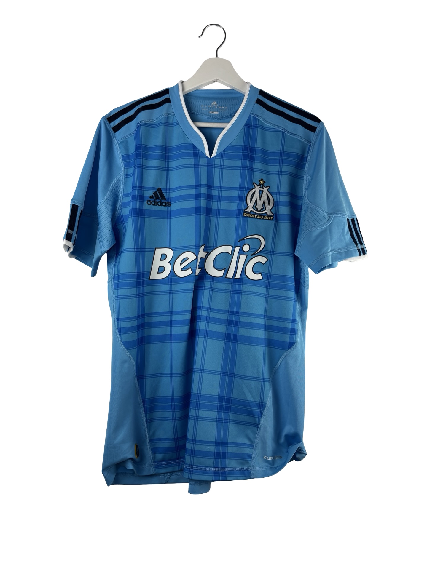 Maillot vintage de l’Olympique de Marseille saison 2010/2011. Maillot extérieur bleu de l’OM signé Adidas.