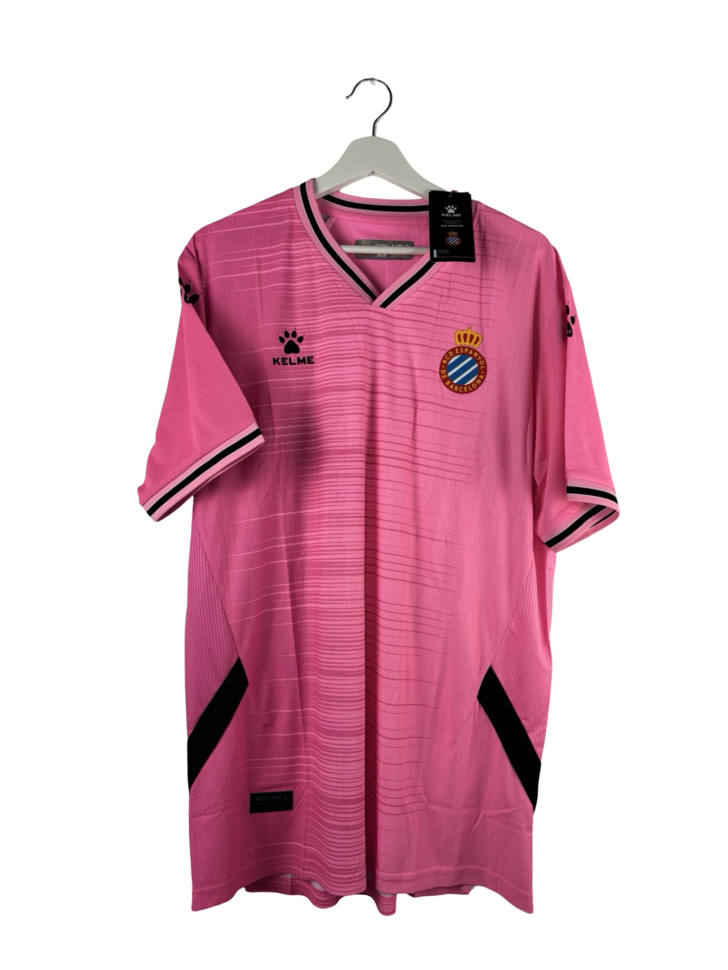 Maillot extérieur du RCD Espanyol saison 2022/2023. Rose signé Kelme.
