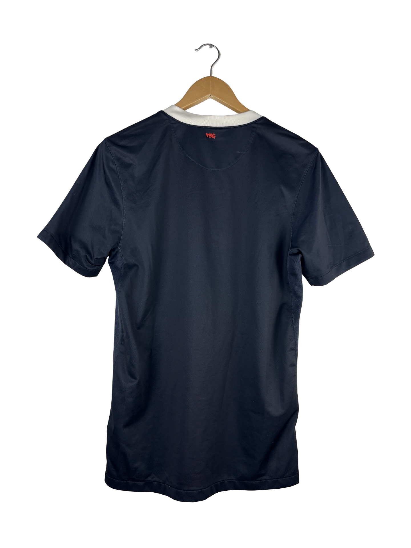 Maillot vintage du PSG saison 2011/2012. Maillot domicile porté par les parisiens entraînés par Antoine Kombouaré lors de la première saison sous l’ère qatarie du PSG. Paris terminera deuxième de Ligue 1 derrière Montpellier. La légende Carlo Ancelotti prendra le relai le 30 décembre 2011. Javier Pastore rejoindra le club pour 42 millions et marquera le début d’une nouvelle ère. Maillot iconique du PSG, le premier de l’ère QSI signé Nike.